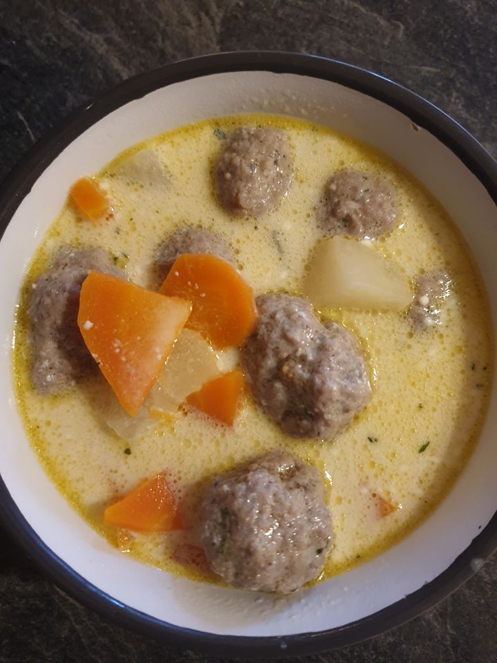 🔸 Nun die Sahne, Frischkäse und Schmand unterrühren und die Mettbällchen in die Suppe geben