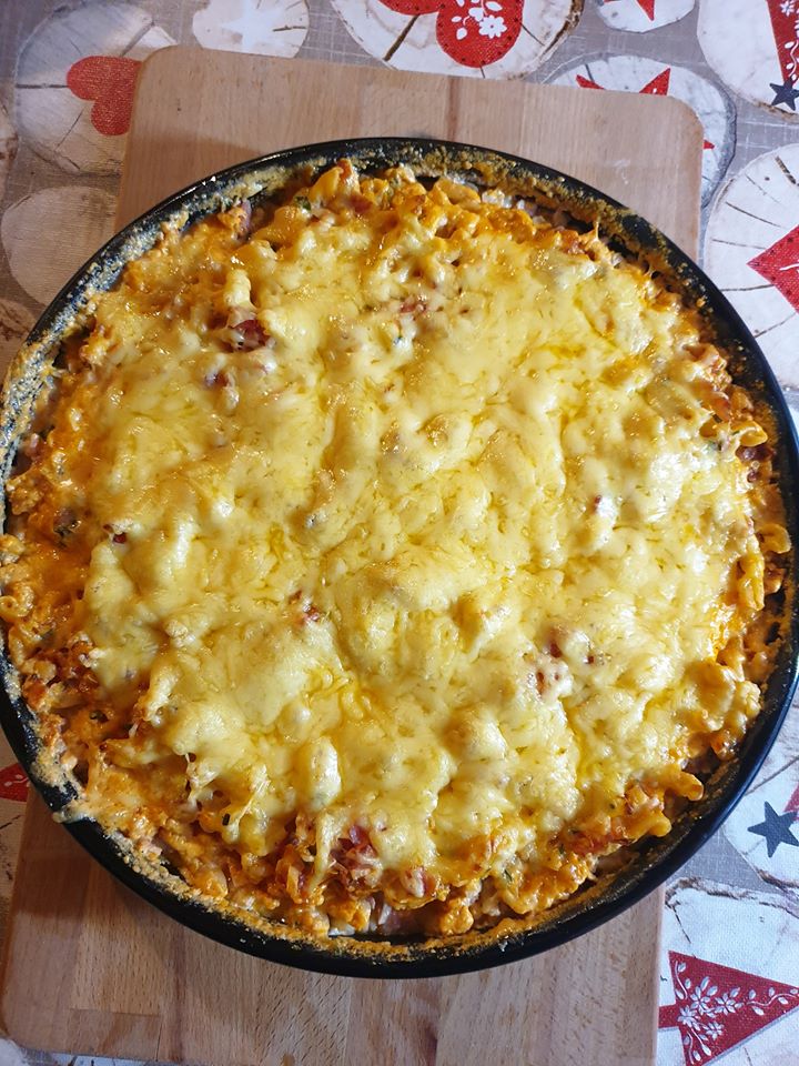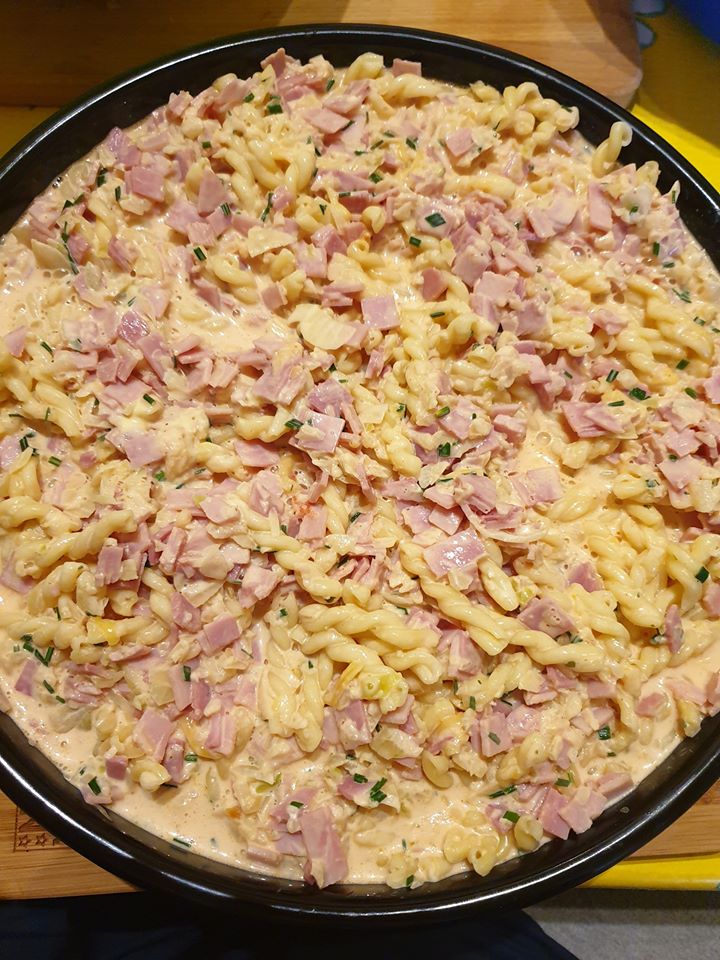 🔹 gegarte Nudeln in eine Auflaufform geben