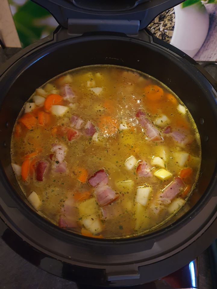 Diese leckere Erbsensuppe erinnert mich an meine Eltern denn ich finde sie schmeckt fast so wie damals zuhause 🙂 Da musste auch immer Bauchspeck mit rein und deftig musste sie sein mit ordentlich Wurst drin
