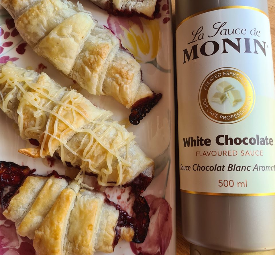 ▪ Mega lecker mit Monin White Chocolate Flavoured Sauce und Himbeer Marmelade