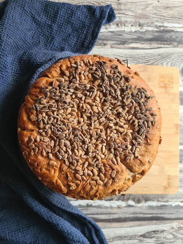 ▪Den runden Zaubermeister nutze ich gerade ganz neu, habe die Form sowie den Deckel gefettet und bemehlt und einige Sonnenblumen Kerne auf den Boden gelegt