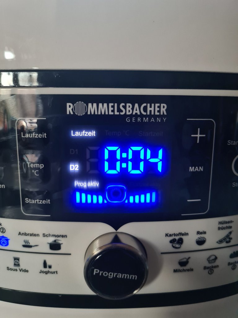 Deckel drauf und das Programm Dampfdruck 2 wählen, dadrauf achten das das Ventil geschlossen ist